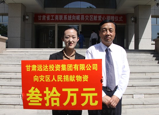 [2012-5-23]扶危濟困 奉獻社會 [2012-5-23]心系災區 大愛遠行 [2011-4-10]甘肅遠達集團向青海玉樹地震災區捐助價值30萬...